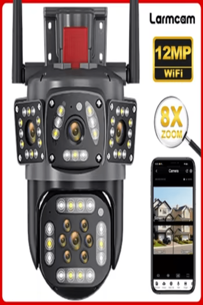6K 12MP WiFi IP Camera Outdoor Three Lens Three Screen CCTV Waterproof PTZ Mini Street Camera 360° Security Camera Surveillance