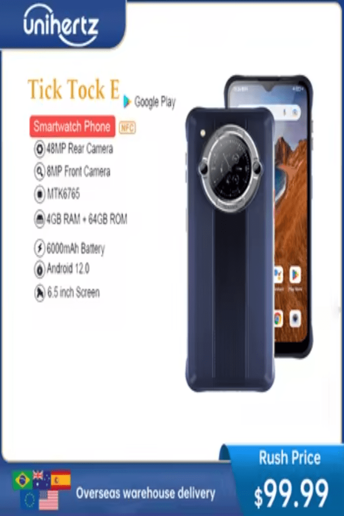 Unihertz – Smartphone Ticktock E 4 go 64 go débloqué, téléphone portable, batterie 6000mAh, écran 6.5 pouces, Android 12, charge rapide 20W