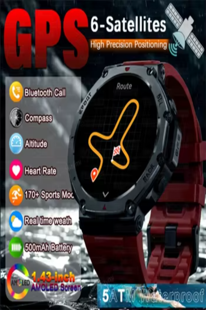 Pour HUAWEI XIAOMI GPS montre intelligente 5ATM étanche intégré double bande GPS boussole Altitude militaire Sport Smartwatch hommes 2025 nouveau