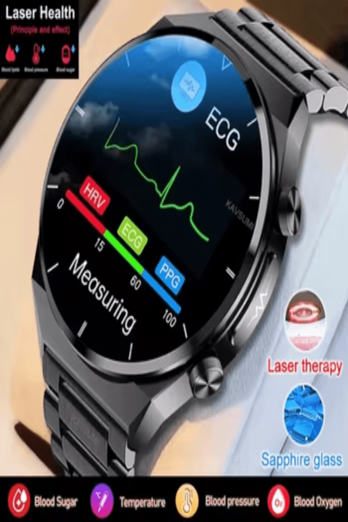 Montre connectée ECG + PPG pour hommes, moniteur de santé, moniteur de glycémie, de glycémie, de pression artérielle et de température Linge, thérapie laser