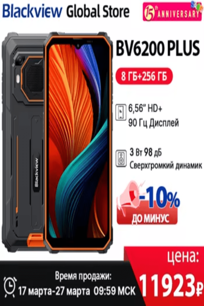 Blackview BV6200 Plus téléphone robuste 6.56 pouces HD + affichage 3W haut-parleur stéréo Ultra fort 11000mAh NFC Android 14 téléphone portable