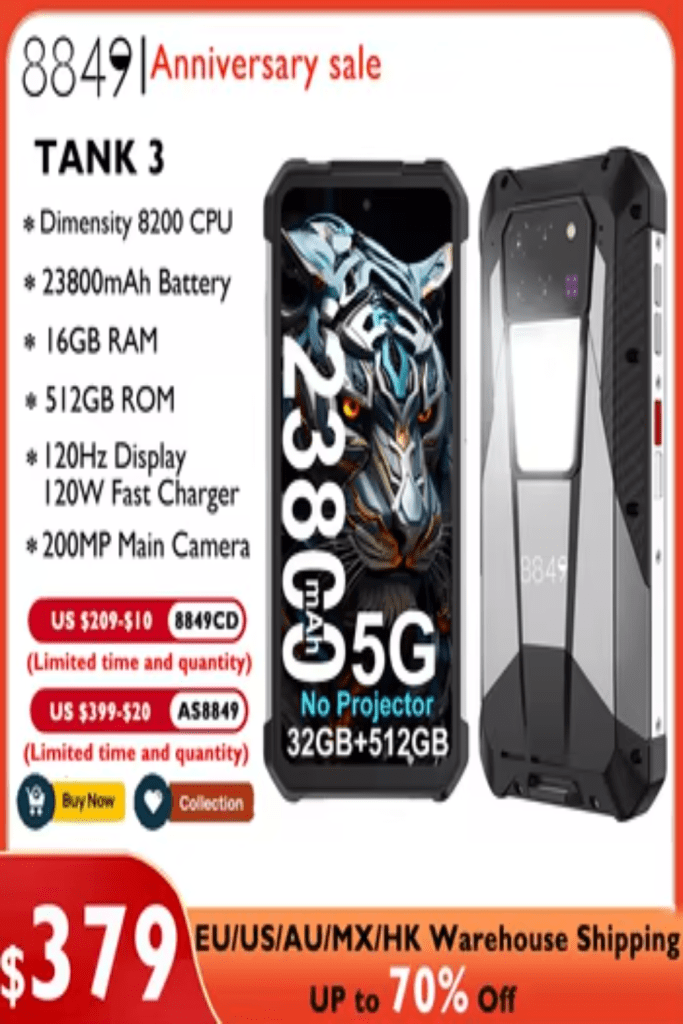 8849 Tank 3 Smartphone robuste Android 5G 32 + 512GB 23800mAh 120W chargeur 200MP 120Hz GPS double SIM téléphone portable