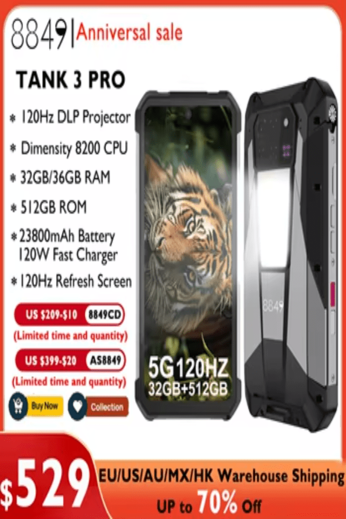 EU MX Warehouse 8849 Tank 3 Pro par Unihertz Smartphone robuste 5G avec projecteur 100 Lumens 32/36GB 512GB 23800mAh téléphones portables