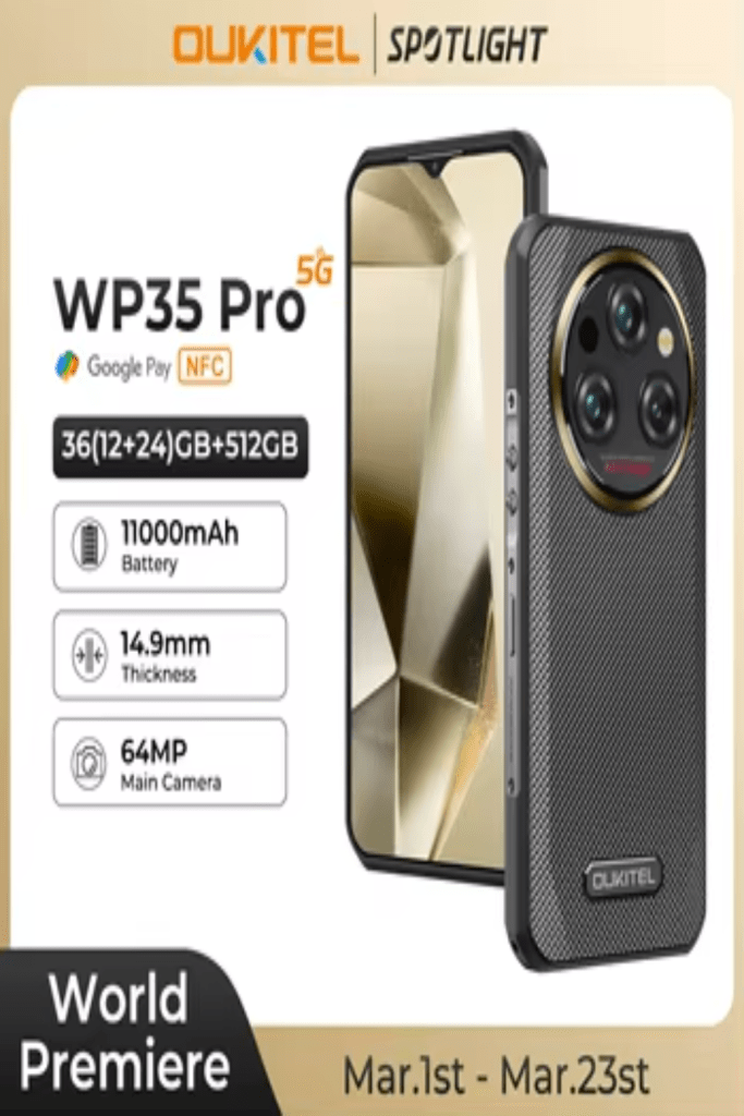Première mondiale Oukitel WP35 PRO Smartphone robuste 5G 11000mAh 36GB + 512GB, écran 6,6″ 2,4K Andiron 14, 64 MP, téléphone portable NFC