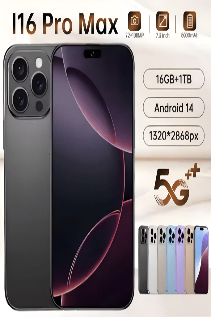 2025 Original 16G + 1 to Smartphone 7.3 pouces étui pour I16 ProMax plein écran 4G 5G téléphone portable 8000 mAh téléphones mobiles Version mondiale