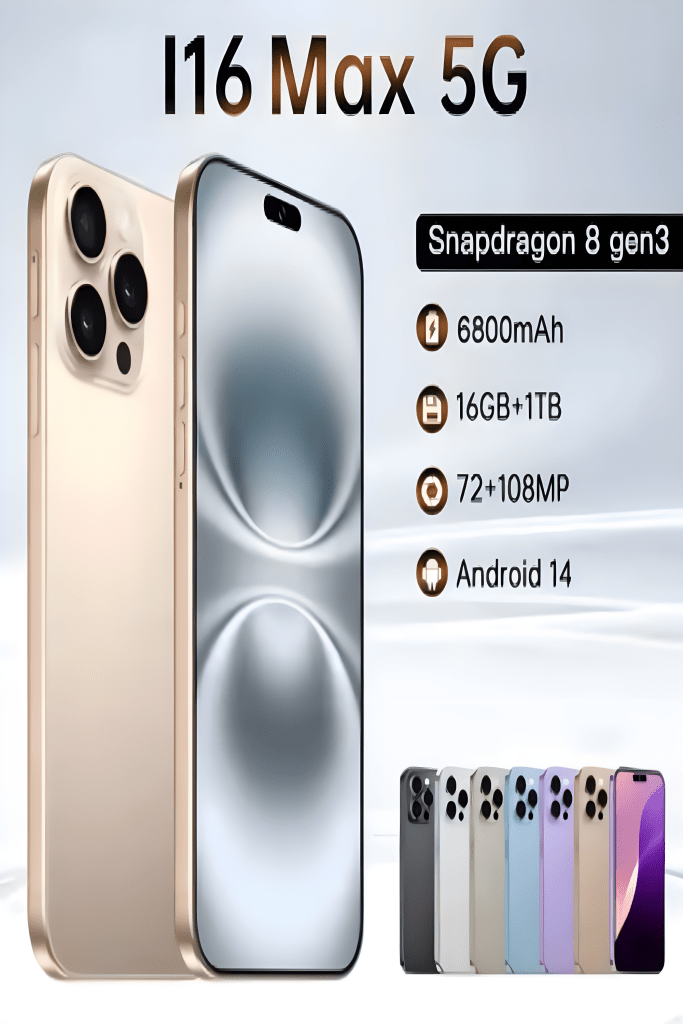 Tout nouveau Original 16GB + 1TB pour Smartphone 6.8 pouces I16 Max Pro plein écran 4/5G téléphone portable 6800mAh téléphones mobiles Version mondiale