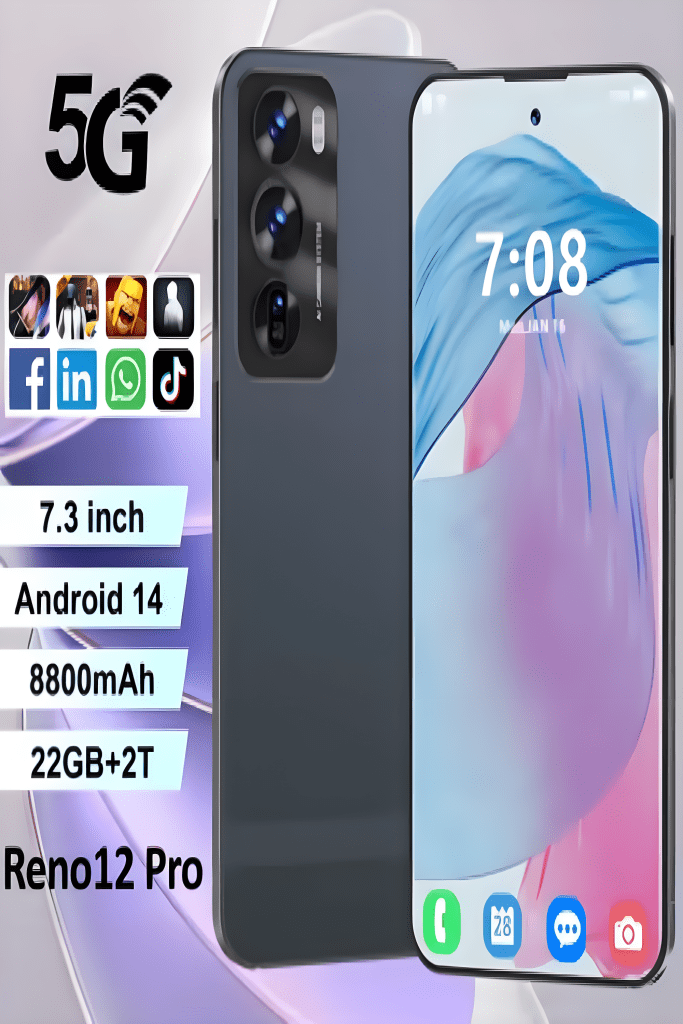 Nouveau Smartphone 5G Reno 12 Pro 7.3 « Android Qualcomm 8 Gen 2 téléphones portables 10 Core double SIM téléphone débloqué Celulares téléphones mobiles