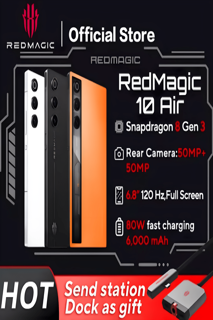 Téléphone de jeu RedMagic 10 Air, version mondiale, design léger, 6.8 pouces, Snapdragon 8 Gen3, 6000mAh, 80W, Charge 50MP, NFC
