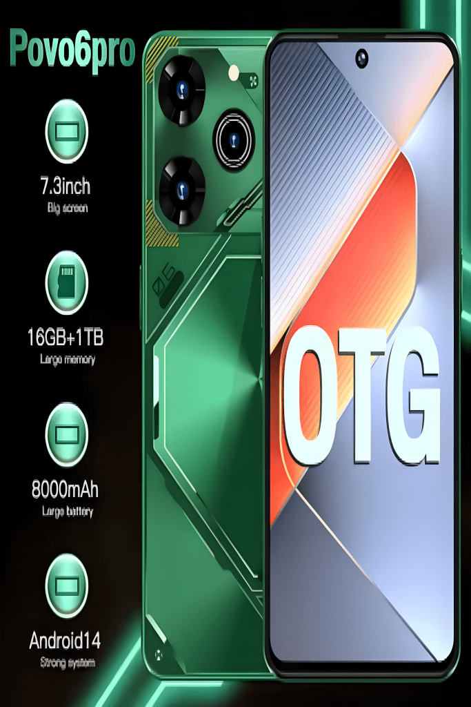 2025 Version mondiale Povo 6 pro Smartphone 5G 7.3 pouces écran téléphones mobiles Snapdragon 8 Gen3 8000mAh Android 14.0 Celulares