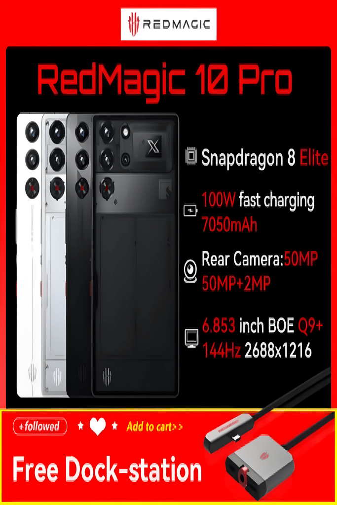 Nouvelle Version mondiale originale Redmagic 10 Pro Snapdragon 8 Elite 6.853 pouces Q9 + 144Hz 2688×1216 AMOLED 50MP + 50MP + 2MP 7050mAh 100W