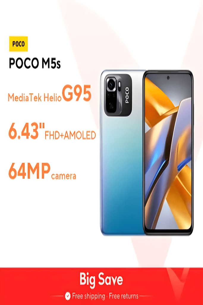 POCO M5s Caméra Façade AI , Version Globale, 128 Go, 256 Go, NDavid, MTK G95, 64MP, 6.43 Pouces, AMOLED Dotdisplay, 33W