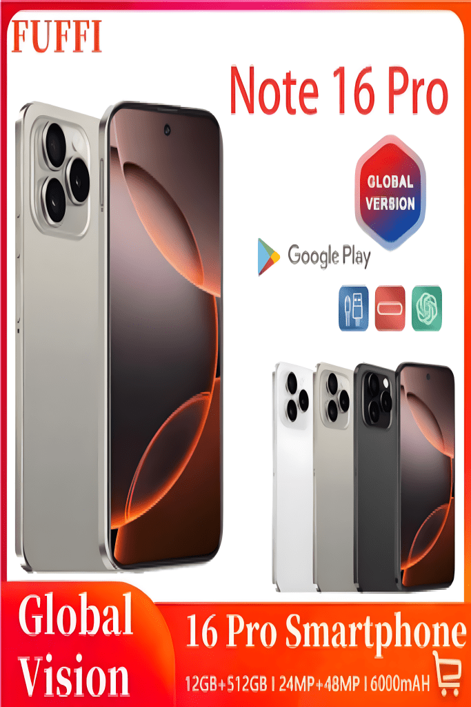 Vision mondiale 5G Smartphone Android Note 16 Pro 6000mAH 12GB RAM 256G ROM 6.8 pouces 1920x1080HD 24 + 48MP MTK10 Core 4G téléphone portable
