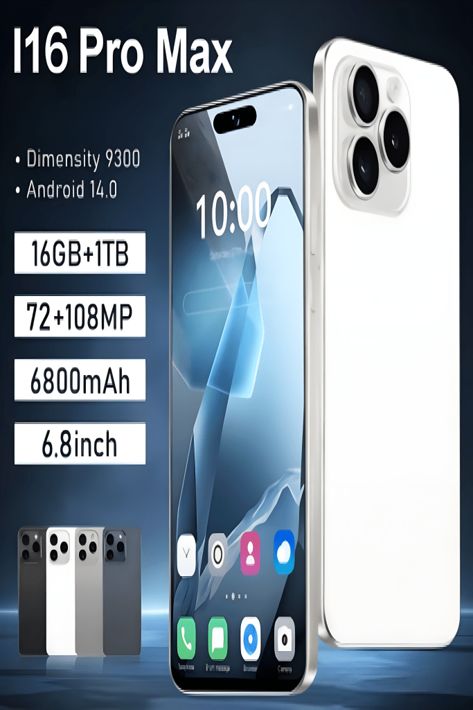 2025 nouvelle haute qualité pour i16 Pro Max 6.8 pouces LCD Smartphone écran tactile panneau d’affichage dynamique 6800 mAh téléphones mobiles
